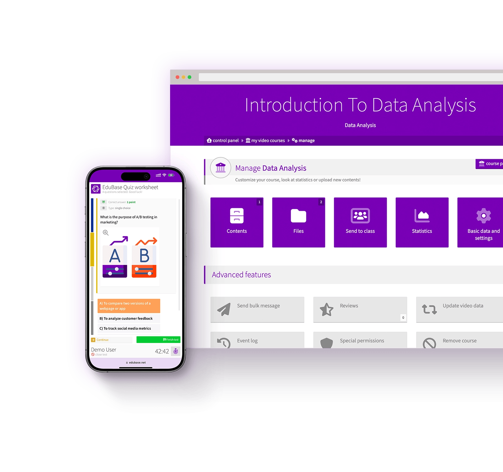Reinforce your brand by having your own EduBase platform customized to your needs. Your subdomain, your logo, your colors.